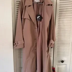 Chic Ava & Viv trench coat. Features button closure and adjustable cuffs. Perfect for layering.