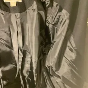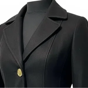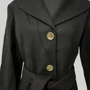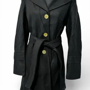 Michael Kors Elegant Black Hooded Trench Coat with Gold Accents (item#d10001)