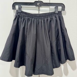 Features: Lightweight nylon fabrication, breathable design, smocked elastic waistband, hand pockets, seam detail at legs, flowy silhouette, built-in quick-dry briefs