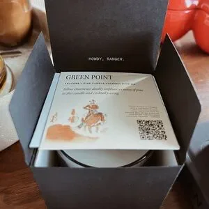 Super lovely scent! Smells clean and warm at the same time. Comes with their cowboy matches, new in box. No flaws!