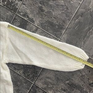 Handknit ivory sweater with beautiful floral and bow embroidery. Charming scalloped hem and neckline. Perfect for adding a touch of Cottagecore to your wardrobe. Front is a bit longer than the back.