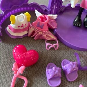 Charming Minnie Mouse doll with purple accessories. Includes playful outfits and shoes. Ideal for creative fun.