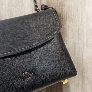 Elegant and versatile, this Coach black leather handbag is perfect for any occasion. Its sleek design and premium material make it a must-have accessory.