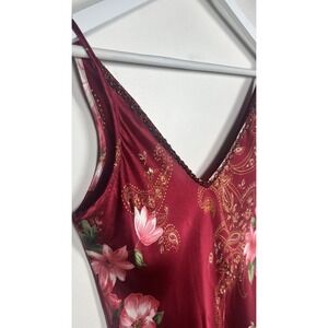 Vtg CALAFORNIA Dynasty Size Small Red Floral Satin MIDI Fitted Slip Dress