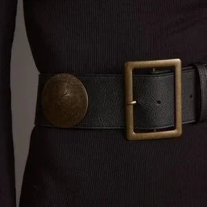 The little detail that makes every outfit instantly cooler. Black leather with bold medallion hardware—wrap it, buckle it, or layer it over your favorite sweater or dress for instant edge.