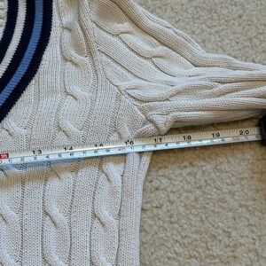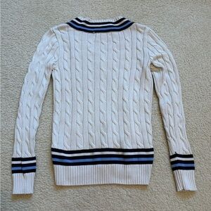 Lauren Ralph Lauren black label white & blue cable knit cricket sweater, sz PXS