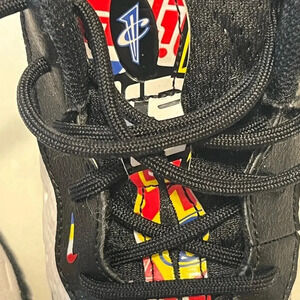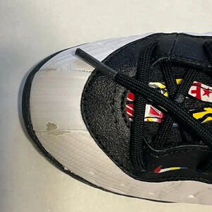 Nike Little Posite Foamposite kids tennis shoes size 10C yellow trim black white