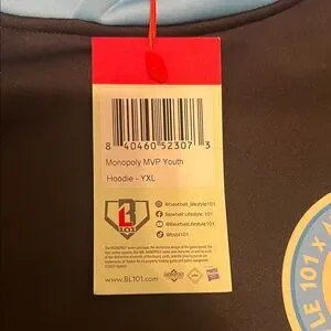 Baseball Lifestyle 101 x Monopoly, Boys XL Hoodie, Black with Blue accents, NWT