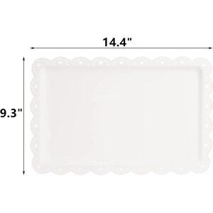 12 Pack White Plastic Serving Tray with Lace Rim, Rectangle Food Trays, Disposab