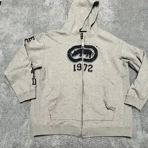 ECKO Hoodie Mens XXL Zip Hoody Sweatshirt Gray Distressed *