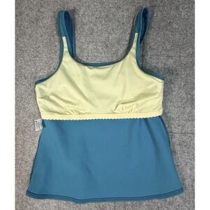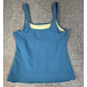 Lands End Womens Long Tank Top Blue Ribbed Square Neck Size 16 Swim