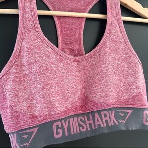 The Gymshark Pink Sports Bra offers medium support with a wide elastic band for a secure fit, featuring a seamless construction and ribbed texture for added style. Its racerback design ensures freedom of movement, making it ideal for both workouts and relaxation.