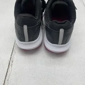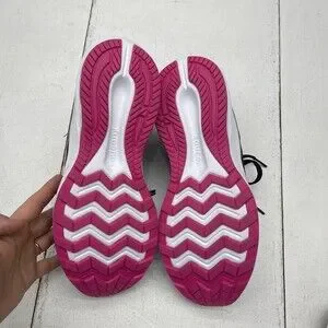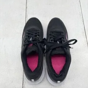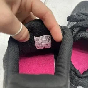 Color: Black upper with pink accents, white midsole, and pink/white rubber outsole.