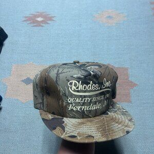 Vintage 90s snapback hat camo cap Rhodes Inc Michigan realtree made in USA