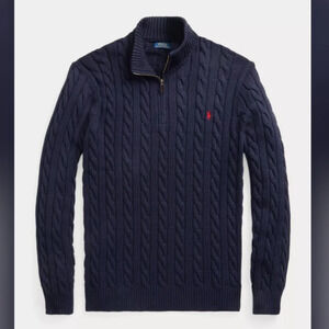 Polo Ralph Lauren Men's Cable-Knit 100% Cotton Quarter-Zip Classic Blue Sweater