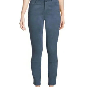 Theory Washable Stretch Genuine Suede Leather FivePocket Cropped Pants Blue Lamb