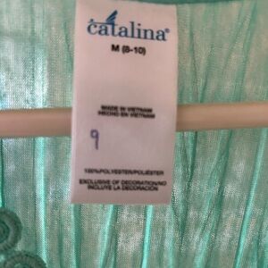 Catalina Chic aqua lace blouse. Only worn once. No flaws, no stains featuring lace around collar. Features 3/4 sleeves and elegant detailing.