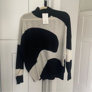 NWT Edinburgh Knitwear Black White Turtleneck Sweater cashmere