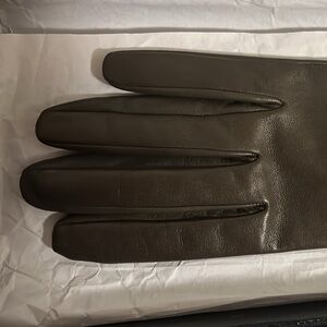 Authentic Prada Black Lambskin Leather Opera Gloves – Luxurious and timeless, crafted from supple lambskin leather. These elegant long gloves reach the elbows, making them the perfect statement piece for fall and winter looks. A chic accessory that adds instant sophistication to any outfit. Black is a Size 7. The last three photos are of an olive/evergreen color in a size 8