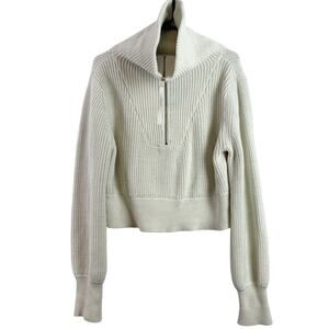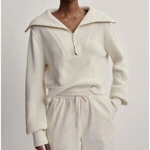Elegant cream sweater with a zip collar. Ribbed texture. Perfect for layering.