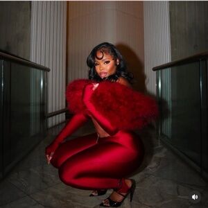 Red feather cape #festivalvibes