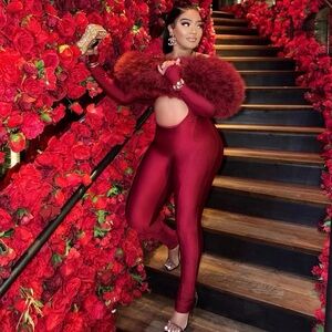 Turn heads with this stunning red jumpsuit, perfect for any occasion. Its vibrant color and sleek design offer a bold fashion statement.