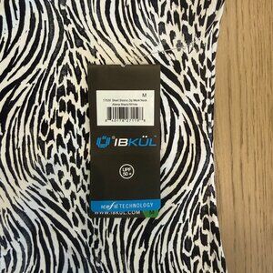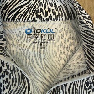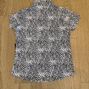 IBKUL Alena Black/White Short Sleeve Zip Mock Neck Top, NWT, Size M