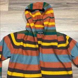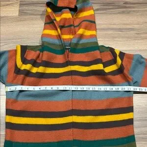 Toad & Co Heartfelt Merino Wool Hoodie in Auburn, an Orange/Yellow/Olive Green/Blue Stripe colorway. Size Medium. Excellent condition, like new condition, doesn’t look to have been worn. Super soft! Small stitch imperfection by the hem and on the back, shown in pictures, very minor though. Pit to pit measures approx 21.5” and Length 31”. 100% wool.