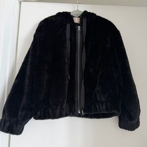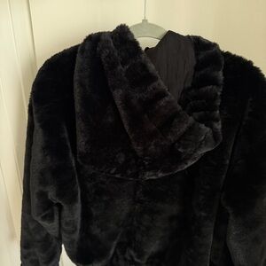 Free People Louder Please Black faux fur zip up hoodie jacket coat