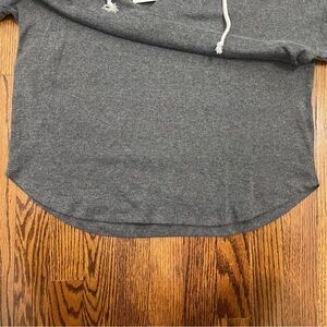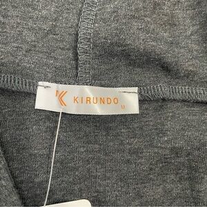 This is a ladies Kirundo gray hoodie. It is super lightweight, has a V cut in the front and two ties to tighten the hood. Hoodie is a size medium and is new with tags.