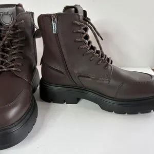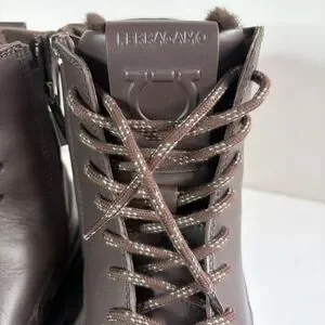 Ferragamo Men's Brown Leather CORALLO Boots With Fur Lining 8.5 NIB