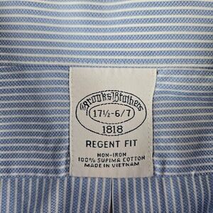 Brooks Brothers 1818 Dress Shirt Men 17.5 6/7 Button Up Long Sleeve Blue Striped