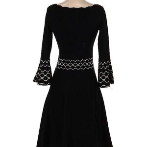 Chic black and white bell sleeve sweater dress by Gabby Skye. Features stylish white accents along the neckline and sleeves. Nice heavy quality.