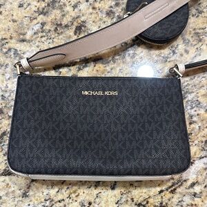 Elegant crossbody bag set by Michael Kors. Features a chic black and white design. Ideal for everyday use.