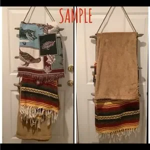 This Driftwood Hanging Blanket is a handcrafted piece of coastal decor that doubles as a towel holder. Made with natural driftwood, this unique item adds a touch of handmade charm to your home.