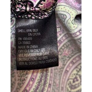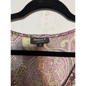 This Daniele O silk-blend paisley top channels major Y2K and retro-boho energy with its glossy satin finish and ultra-flattering draped bust. The vibrant pink, lavender, and yellow pattern adds a playful, feminine touch perfect for parties, layering, or bold everyday styling. A luxe, silky feel with a fitted waist creates an elegant, polished silhouette.