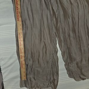 Belle France taupe palazzo pants, made in italy. Silk and viscose with lining. Its neutral tone makes it versatile and easy to pair with any top. Comfortle and soft. Elastic waistband, size medium, see images. Measurements in photos. Waist is quite stretchy. I'm size 10 and can still wear them.
