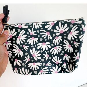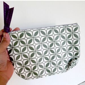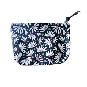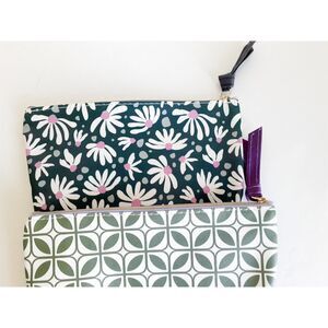 Brand New Two Navy Floral Green Abstract Prints Cosmetic Bag Purse NWOT 6"L