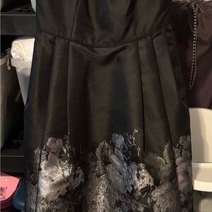 Chic high low dress by Xscape. Features a black base with silver accents. Perfect for elegant events. All reasonable offers considered.