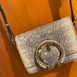 Authentic jimmy choo madeline swarovski crossbody in lizard print, elegant design; bag is in good condition. Serial number intact; Owned for 9 years.