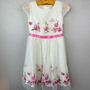 Beautiful white dress with an embroidered stitched floral design. This dress is ready for a special occasion!