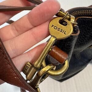 Fossil Black Brown Leather Hobo Shoulder Bag Handbag Purse Vintage Classic