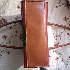 Hand Painted Floral Leather Bag Purse Vintage Zip Top Satchel