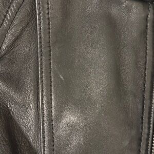 Elevate your style with this sleek black leather jacket. It’s real leather and super flattering! Perfect for any occasion, it offers a timeless look and comfortable fit. There are a couple of imperfections noted in the pictures. No smoking or pets.