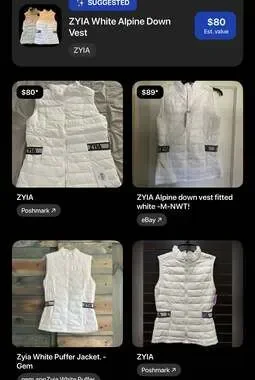 This ZYIA Alpine Down Vest in white is brand new with tags (NWT), offering a fitted and stylish look. Perfect for layering, this activewear vest offers warmth without bulk, ideal for transitional weather or outdoor pursuits. Its lightweight design and clean aesthetic make it a versatile addition to any wardrobe.