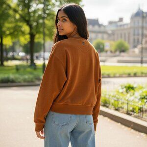 Prana Womens Rust Corduroy Velour Crewneck Pullover Sweatshirt Large