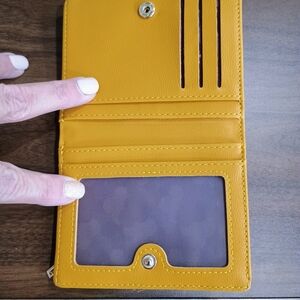 Chic mustard wallet. Ideal for essentials. Compact and stylish.