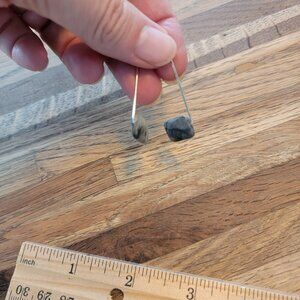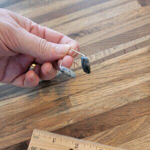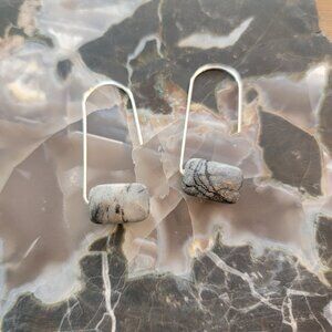 These earrings feature a rectangular gray stone-like piece suspended from a silver hook, giving the illusion that the stone is floating.