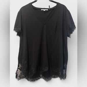 Short Sleeve with lace trim, bottom hem has lace trim
