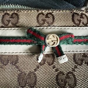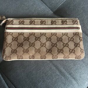 Gucci Beige and Brown Monogram Wristlet wallet with dust bag